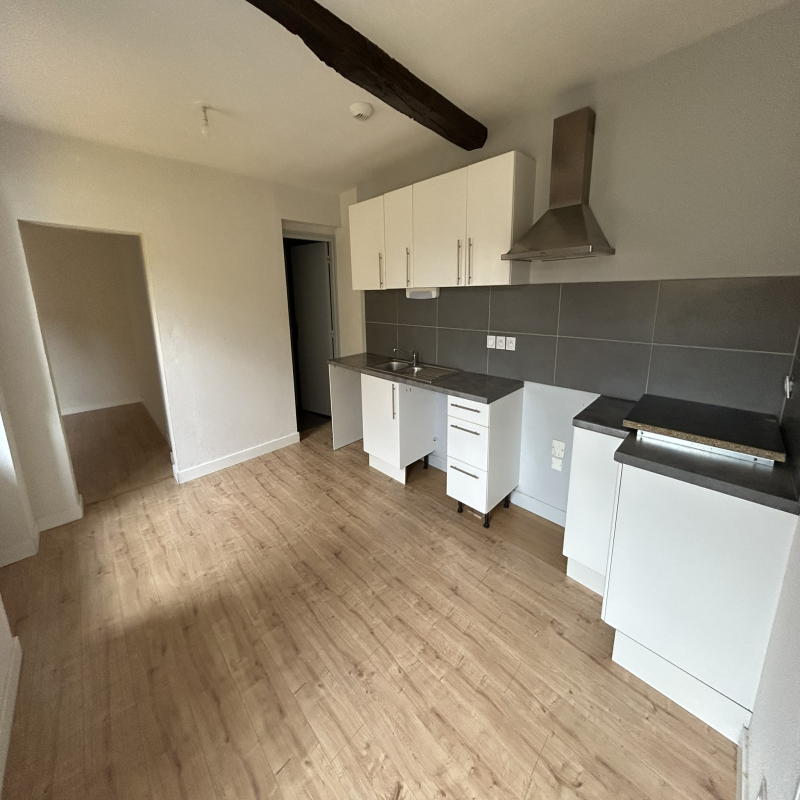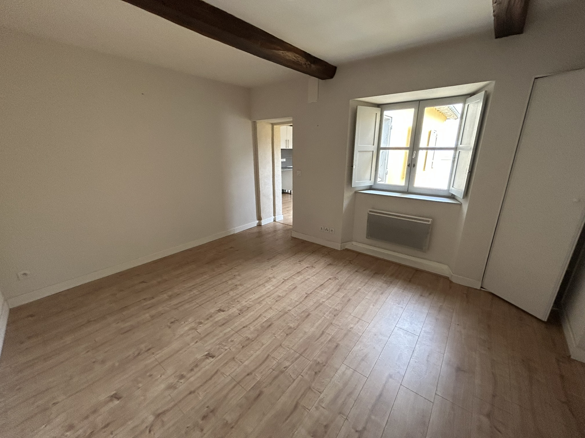 Il se compose d'un séjour, d'une cuisine spacieuse, d'une salle d'eau avec wc et d'une chambre de 14m² avec placard, l'appartement a été entièrement réisolé avec double vitrage.