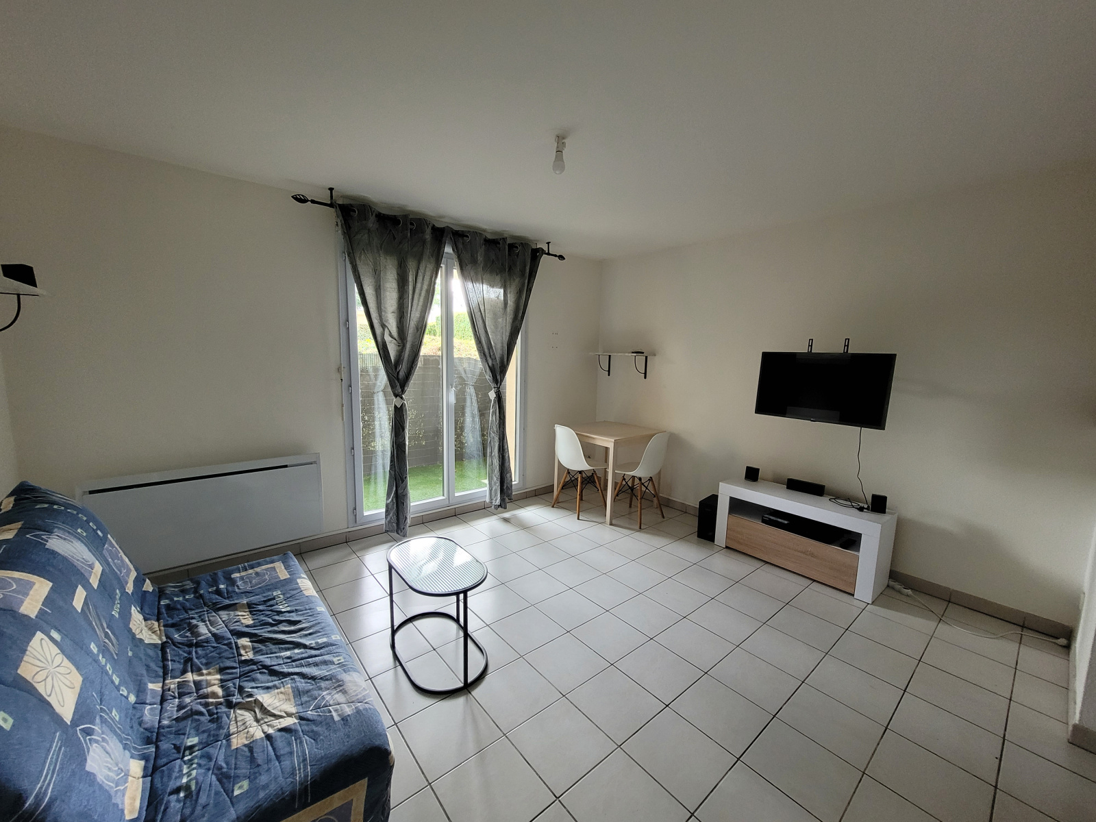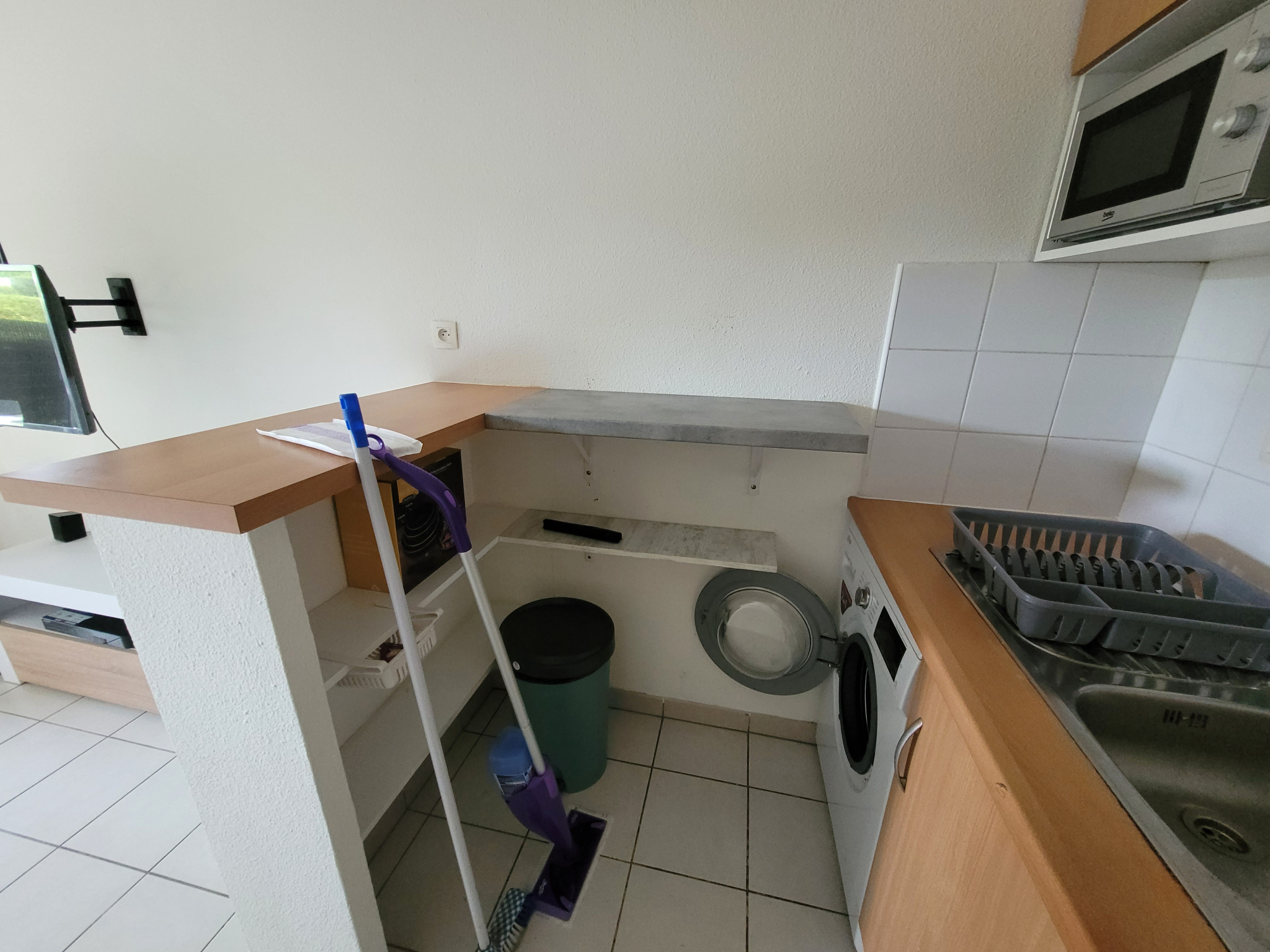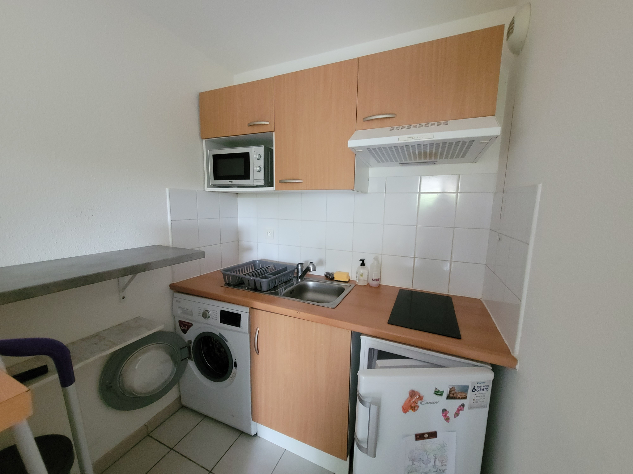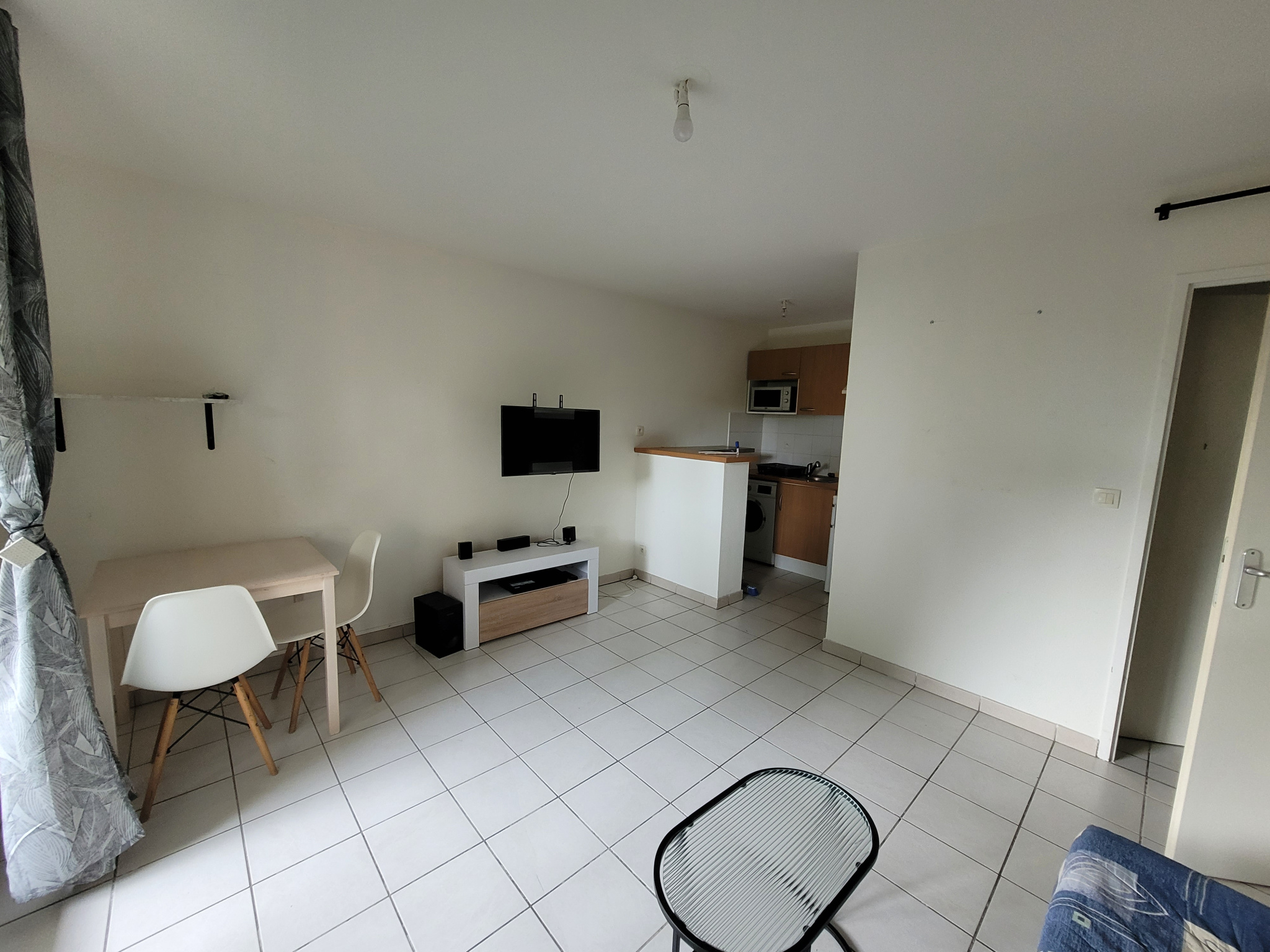 Il se compose d'une entrée avec placard, d'un séjour lumineux donnant sur la cuisine équipée (plaque, machine à laver, micro ondes etc..), d'une chambre avec lit double, d'une salle de baine et d'un wc.