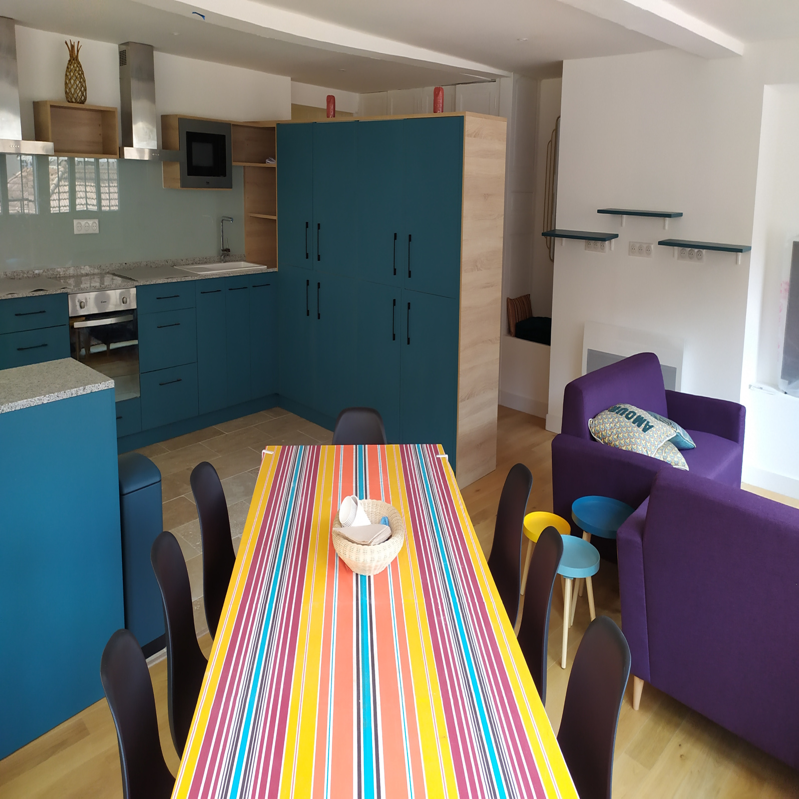 Une cuisine équipée avec réfrigérateur et placard indivuel, plaques de cuisson, lave-vaisselle et tout l'électroménager nécessaire. Mais aussi une buanderie avec machine à laver et séche-linge.