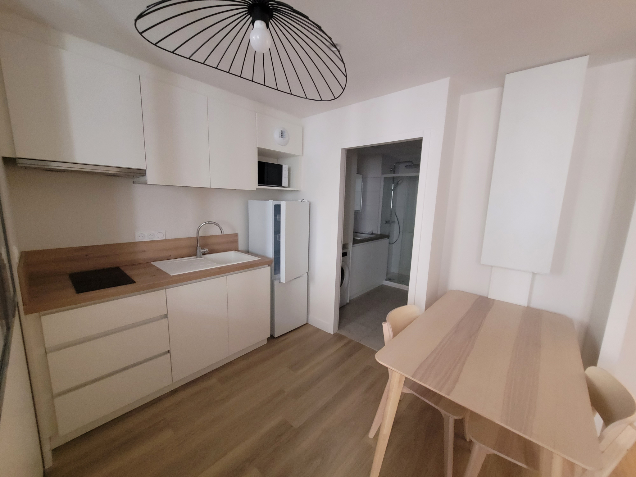 Il se compose d’une belle pièce de vie lumineuse avec cuisine équipée, d’une salle d’eau avec machine à laver ainsi que de WC séparés.