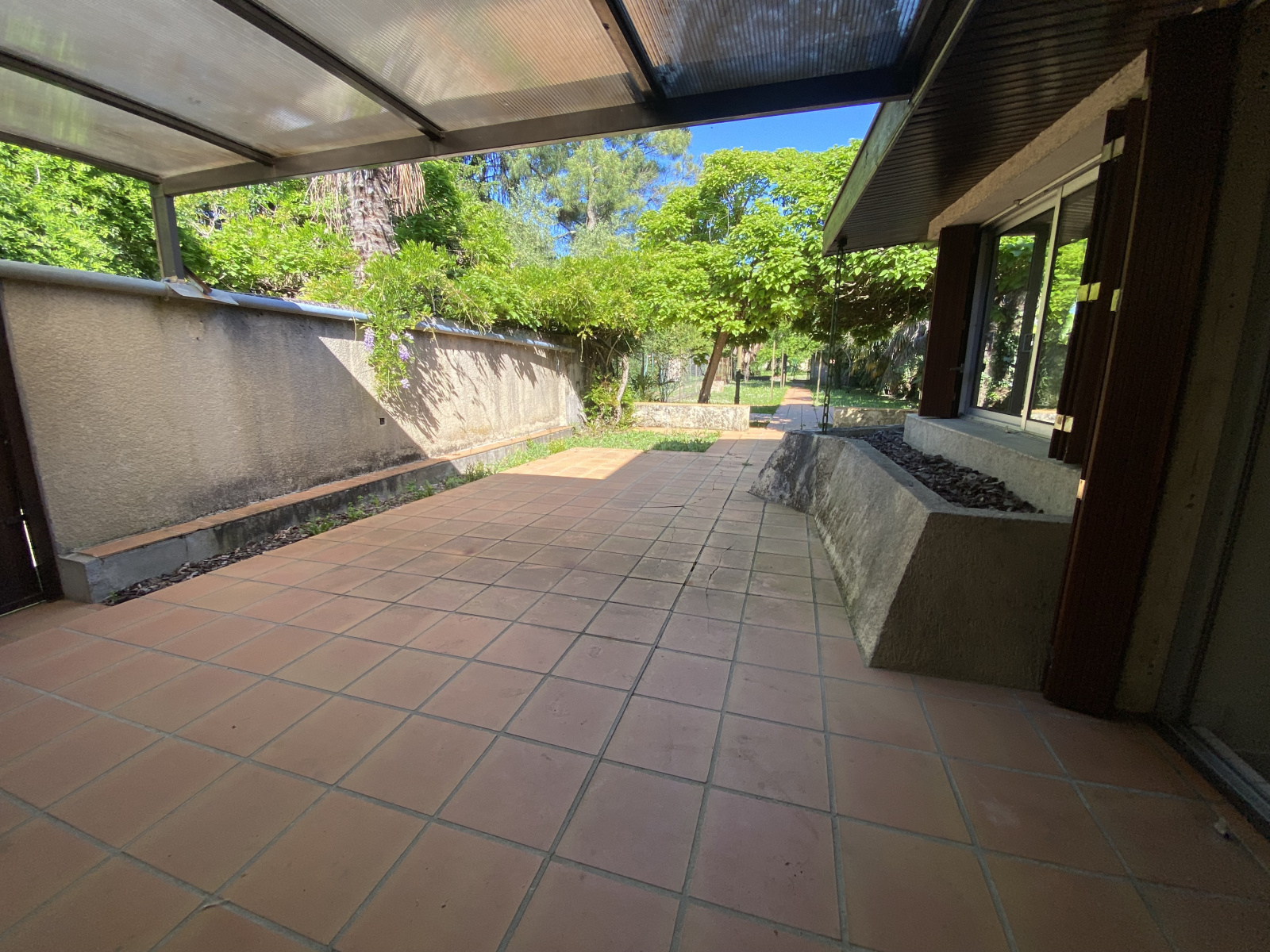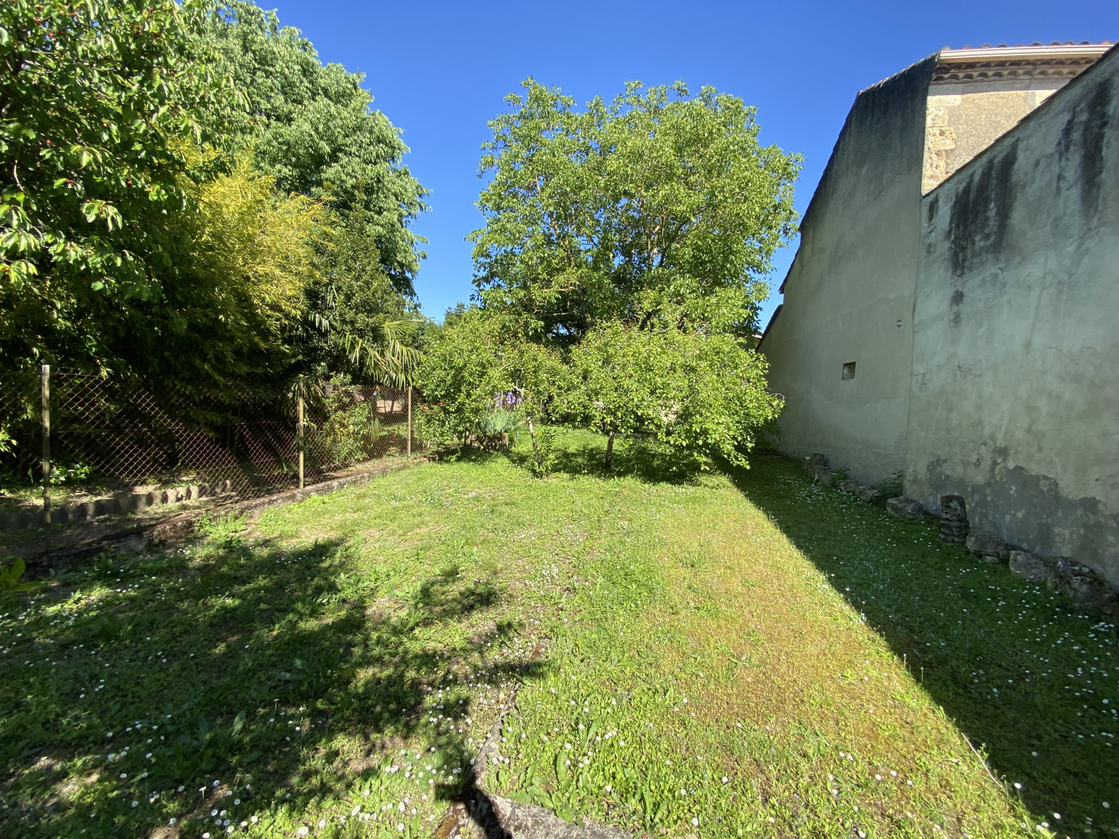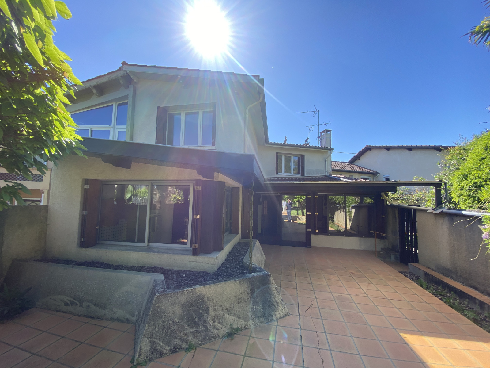 L'extérieur est le point fort de cette maison, 500m² de jardin arboré et clôturé, avec un abri, au calme de la ville avec une superbe terrasse et un accès par le bout du jardin pour les véhicules.