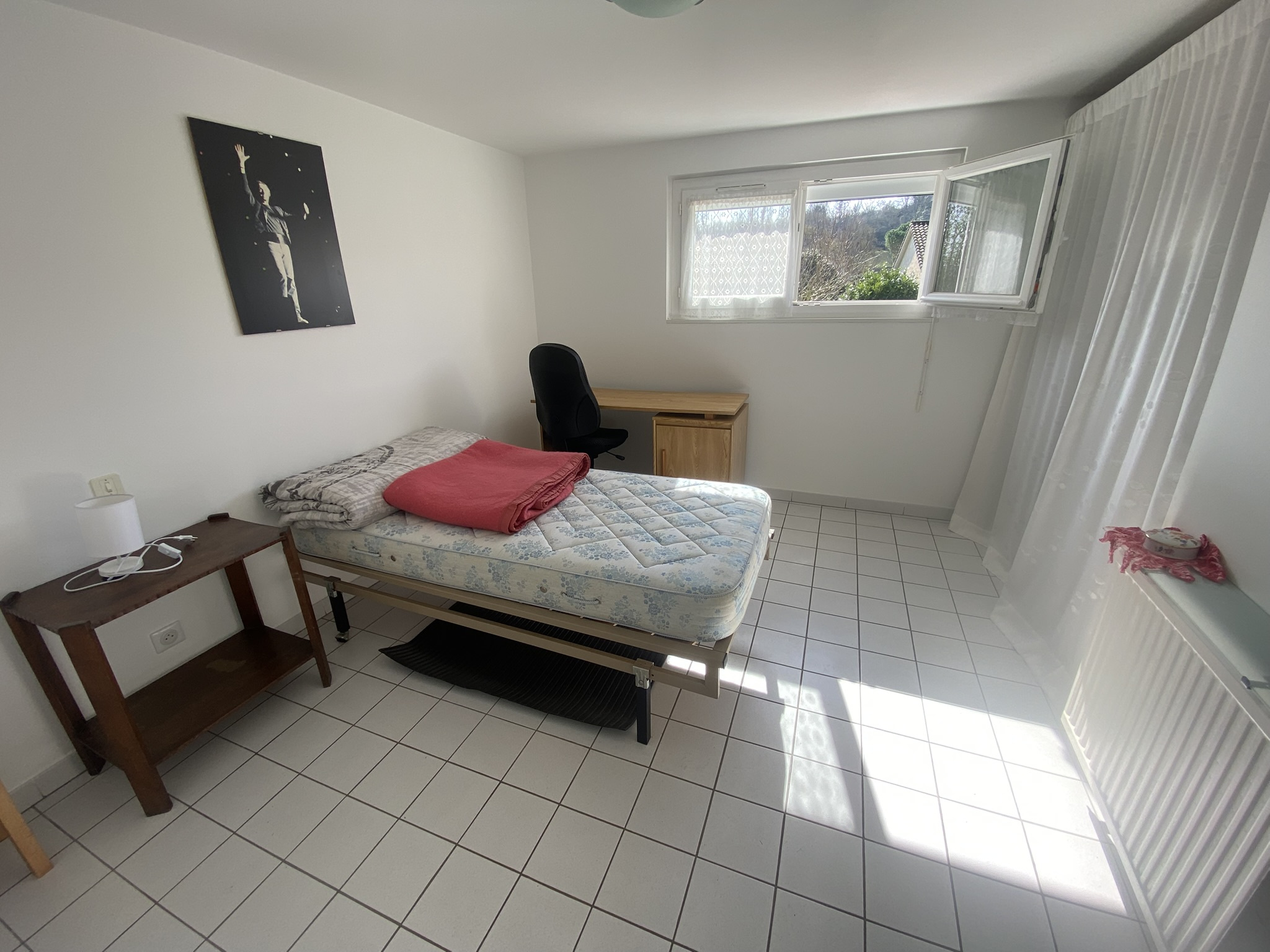 Elle se compose d’un niveau principal accessible de plain-pied, comprenant un séjour lumineux orienté sud avec accès terrasse, une cuisine séparée aménagée, ainsi que trois chambres avec placards et une salle de bains, wc séparé..