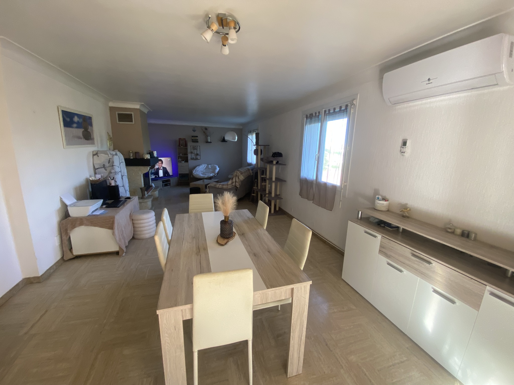 Côté équipements, la maison bénéficie de menuiseries PVC double vitrage, d’une climatisation réversible avec split et d’un insert et surtout d'une isolation par l'extérieur. Le bien est raccordé au tout-à-l’égout.