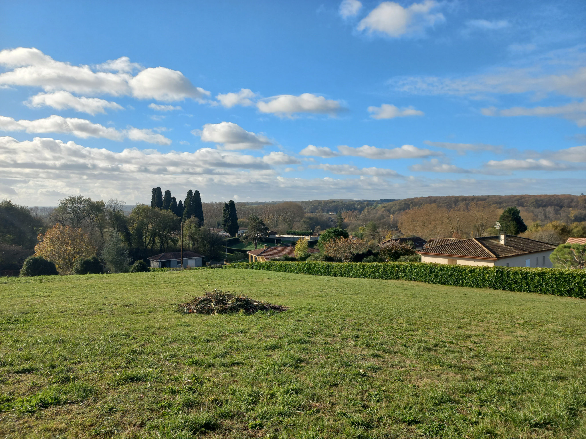 Le terrain constructible est très agréable avec une jolie vue, et est desservi par un chemin privatif clos avec un portail.