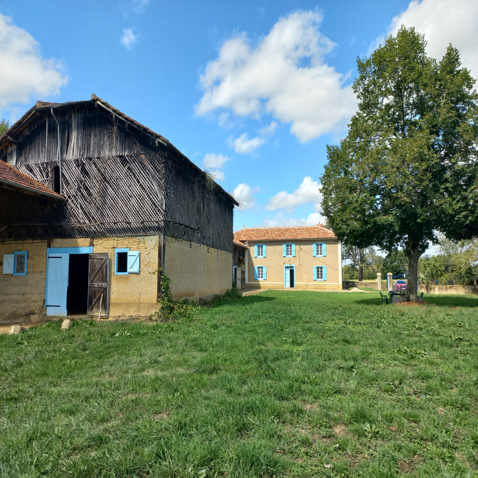 Toiture de la maison et de la grange attenante neuve.Pour finir vue dégagée et agréable avec vue sur les Pyrénées. Nous contacter rapidement !