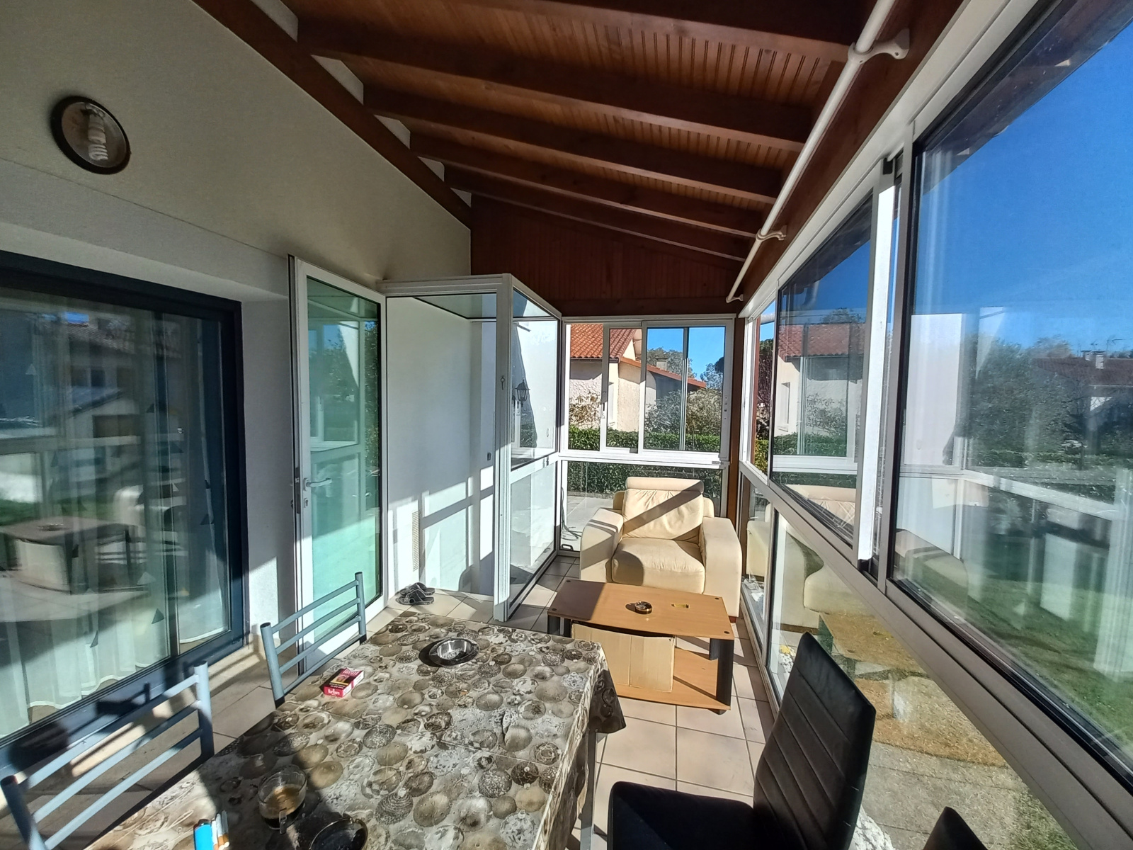 Elle se compose d'une grande entrée ouverte sur la vaste pièce à vivre où se trouve un chaleureux insert à bois, une très agréable vérranda, une cuisine aménagée et fonctionnelle. La maison a l'étage vous offre trois belles chambres dont 2 donnant sur un balcon, une salle de bains avec du marbre. Au Rez de jardin, vous disposerez également d'une belle chambre donnant sur la terrasse, d'une salle d'eau italienne.