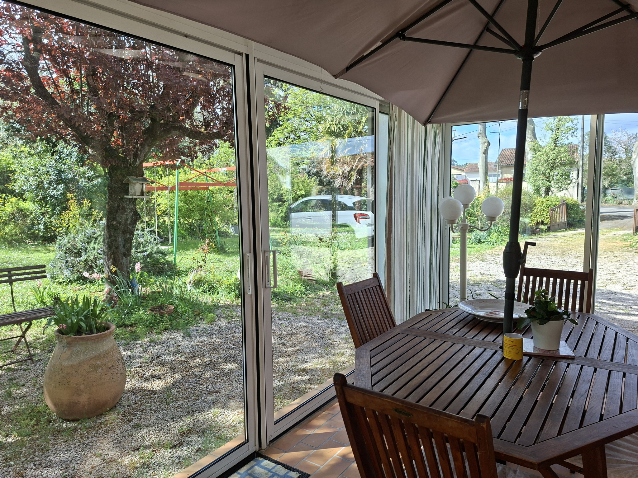 Elle dispose d'une grande et agréable véranda, idéale pour profiter de la lumière et d'un espace convivial une grande partie de l'année.