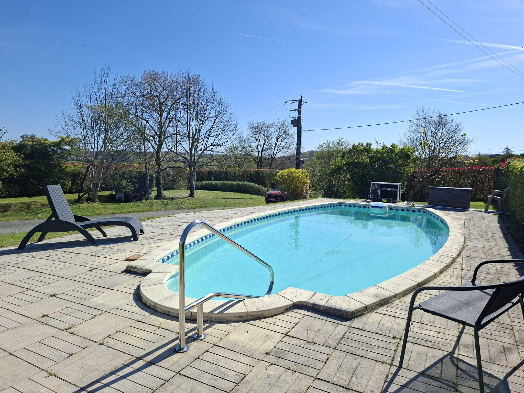 Une agréable piscine (avec pompe à chaleur) complète cette belle maison et invite à la détente, offrant un véritable espace de convivialité pour profiter pleinement des journées ensoleillées.