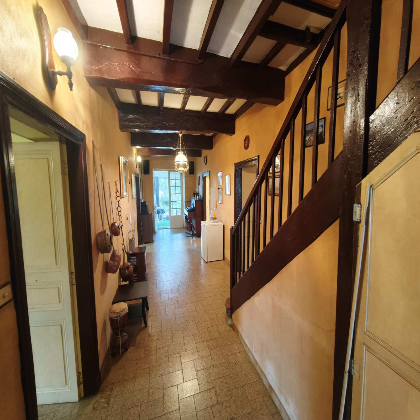 De plus elle dispose d'un grand hangar de 400 m² avec une étable et 2 garages dont la toiture est à reprendre.