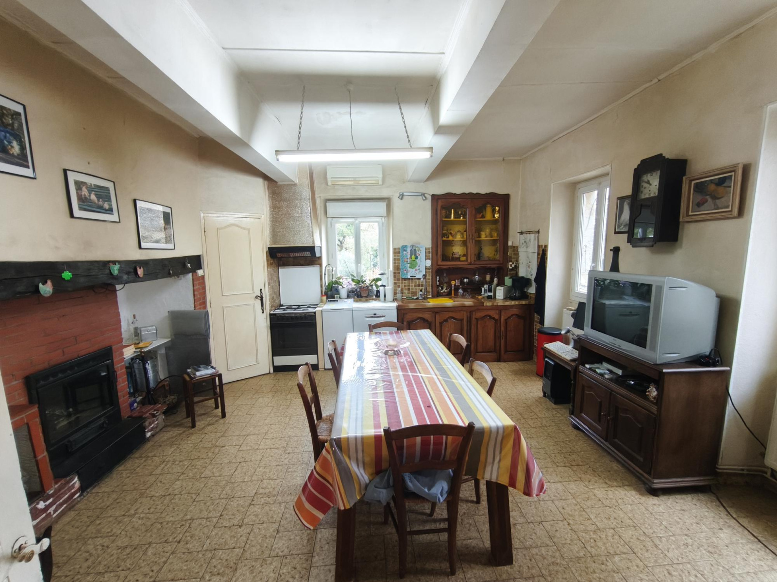 L'entrée s'ouvre directement sur un grand couloir qui dessert le salon avec une cuisine séparée avec cheminée insert bois et climatisation réversible, 2 grandes chambres de 23 m² chacune, une salle de bains, wc séparé et une véranda avec vue sur les Pyrénées idéale pour passer du bon temps. Si vous souhaitez plus grand tous les combles sont aménageables avec une belle hauteur sous plafond pouvant convenir à plusieurs projets.