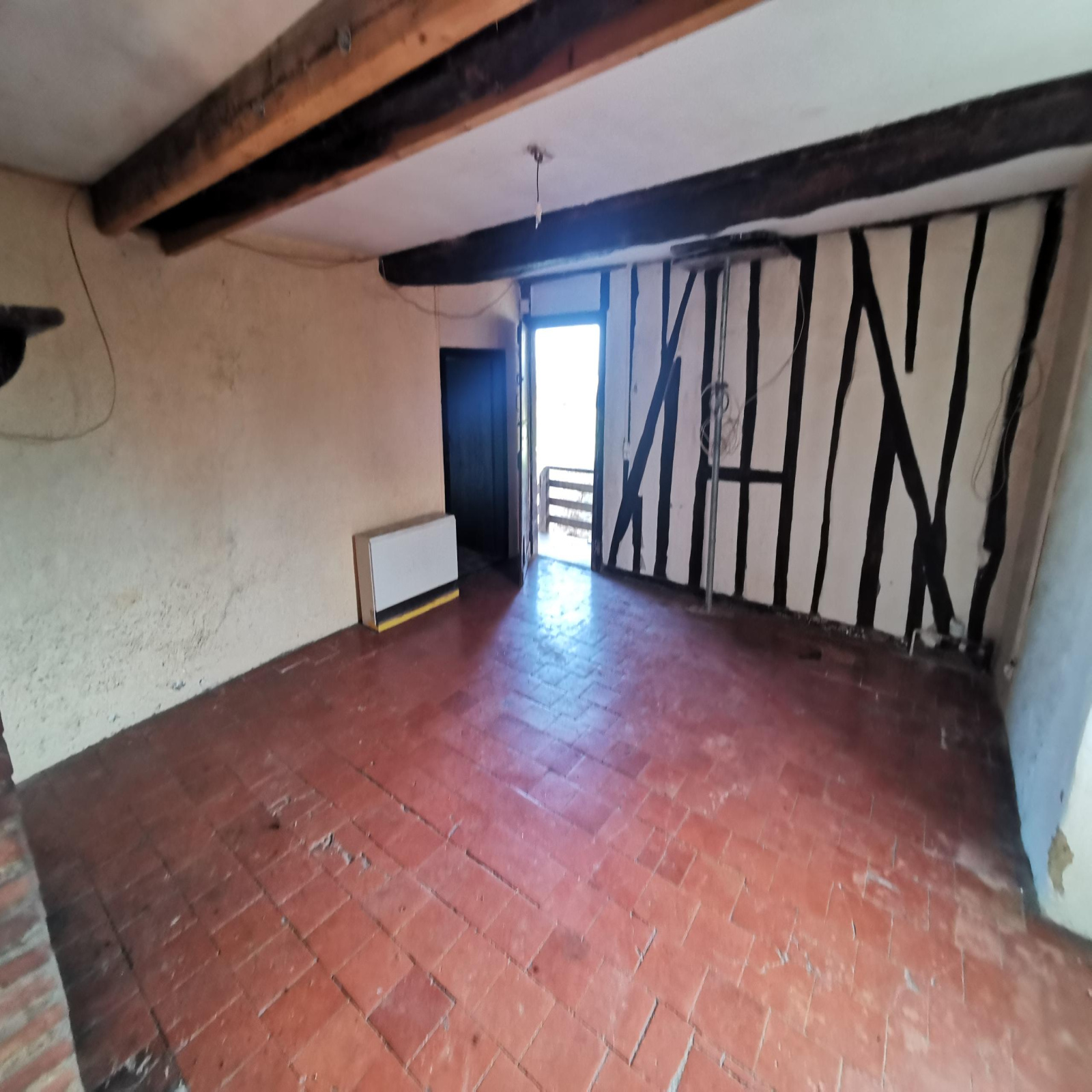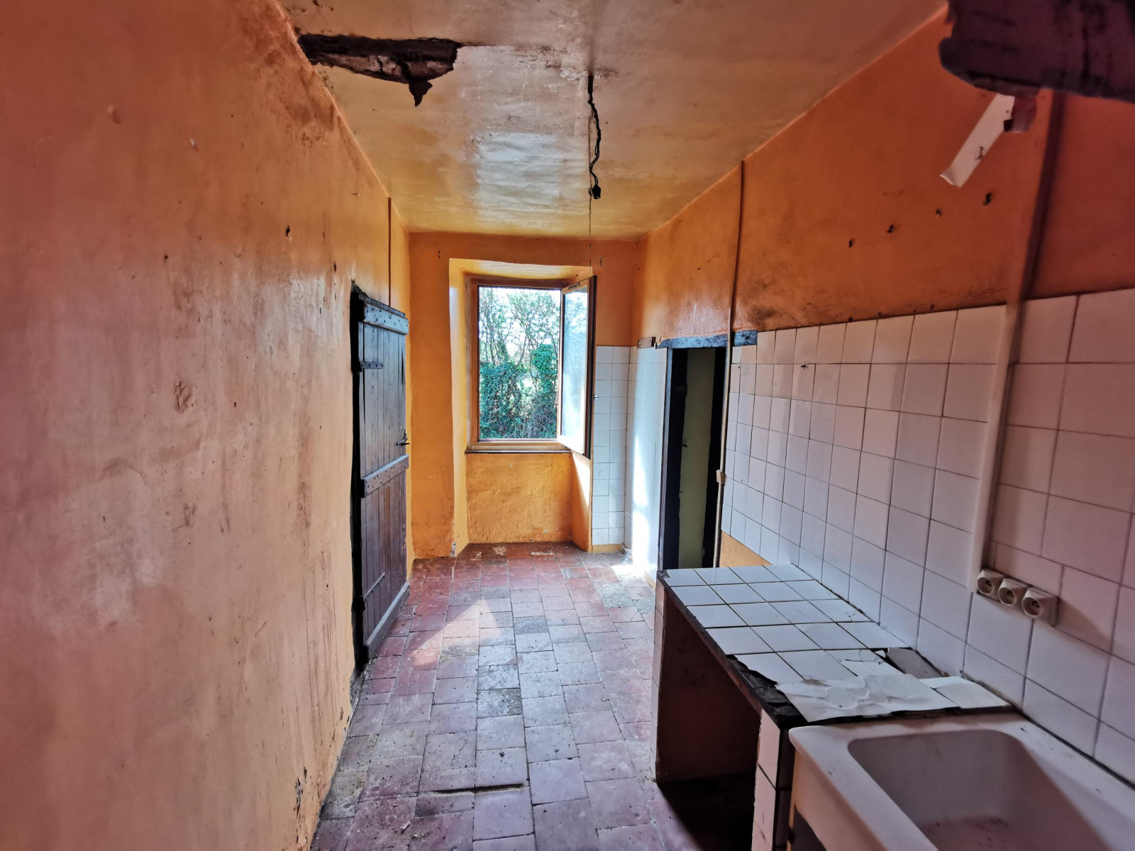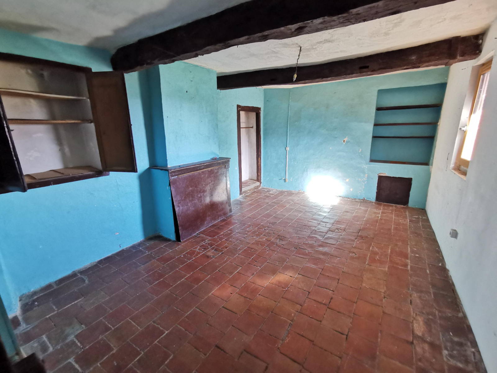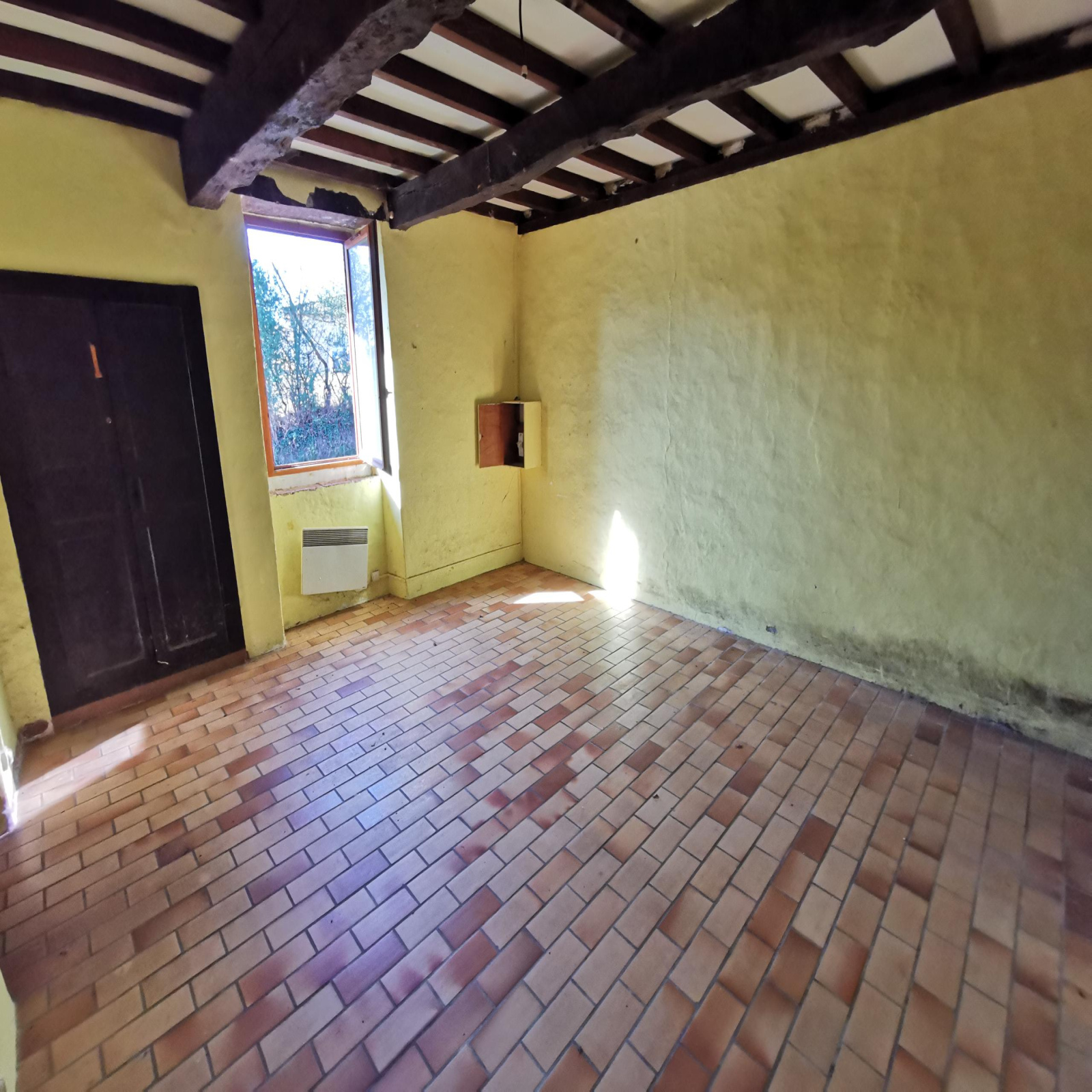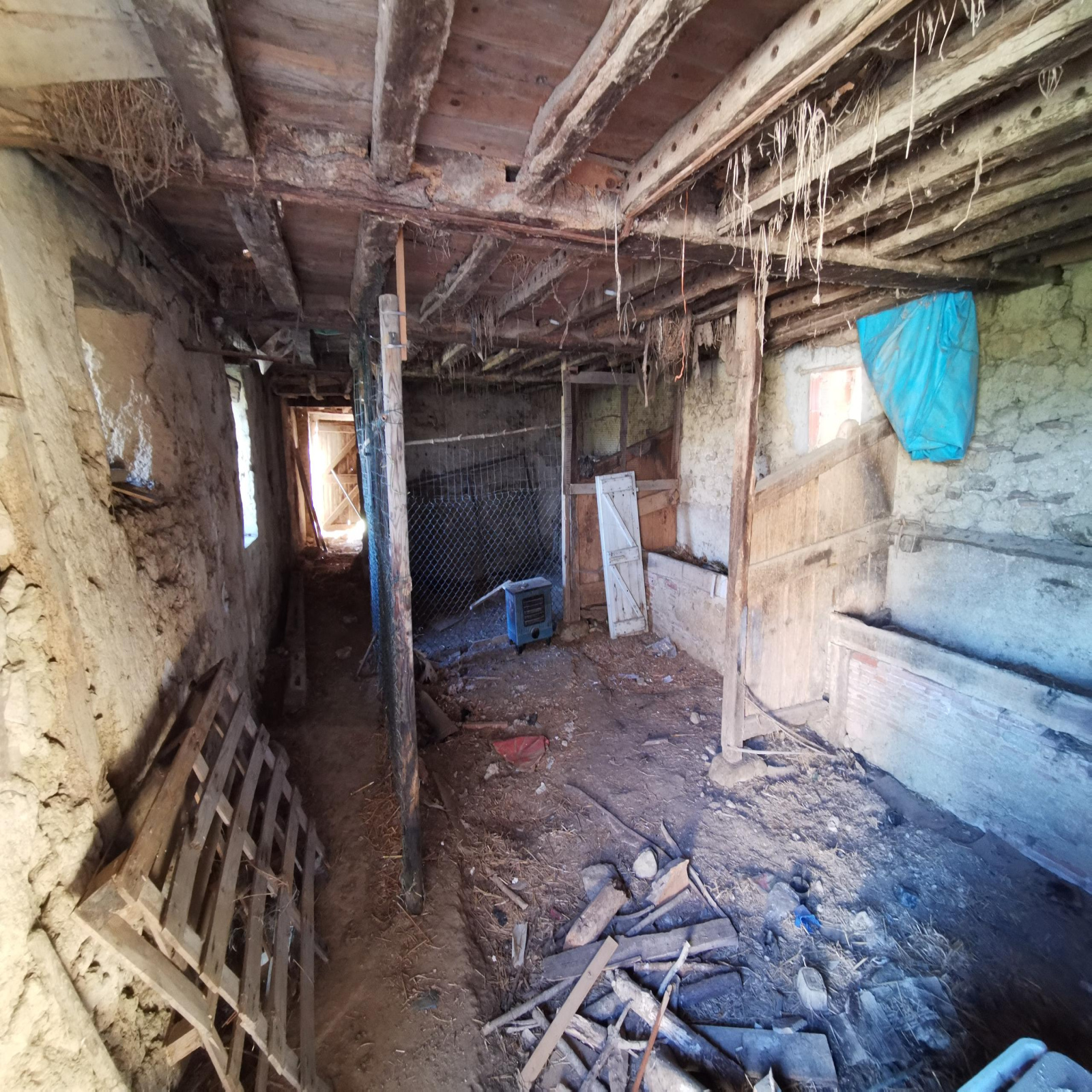 De plain-pied elle est composée d'un salon avec cheminée et poutres apparentes, cuisine séparée, 2 grandes chambres, salle de bains, chais ainsi qu'une étable de 60 m2 pouvant acceuillir tous types de projets. La toiture a été refaite il y a moins de 10 ans, elle est équipée du double vitrage et reliée au tout à l'égout.