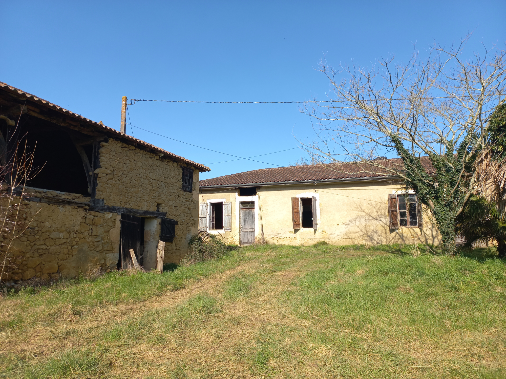 Elle se compose d'une entrée, d'une grande cuisine, d'un séjour, deux spacieuses chambres et d'une salle de bains. Pour les bricoleurs vous disposerez de dépendances, grange, chai, ancienne étables à réhabiliter.