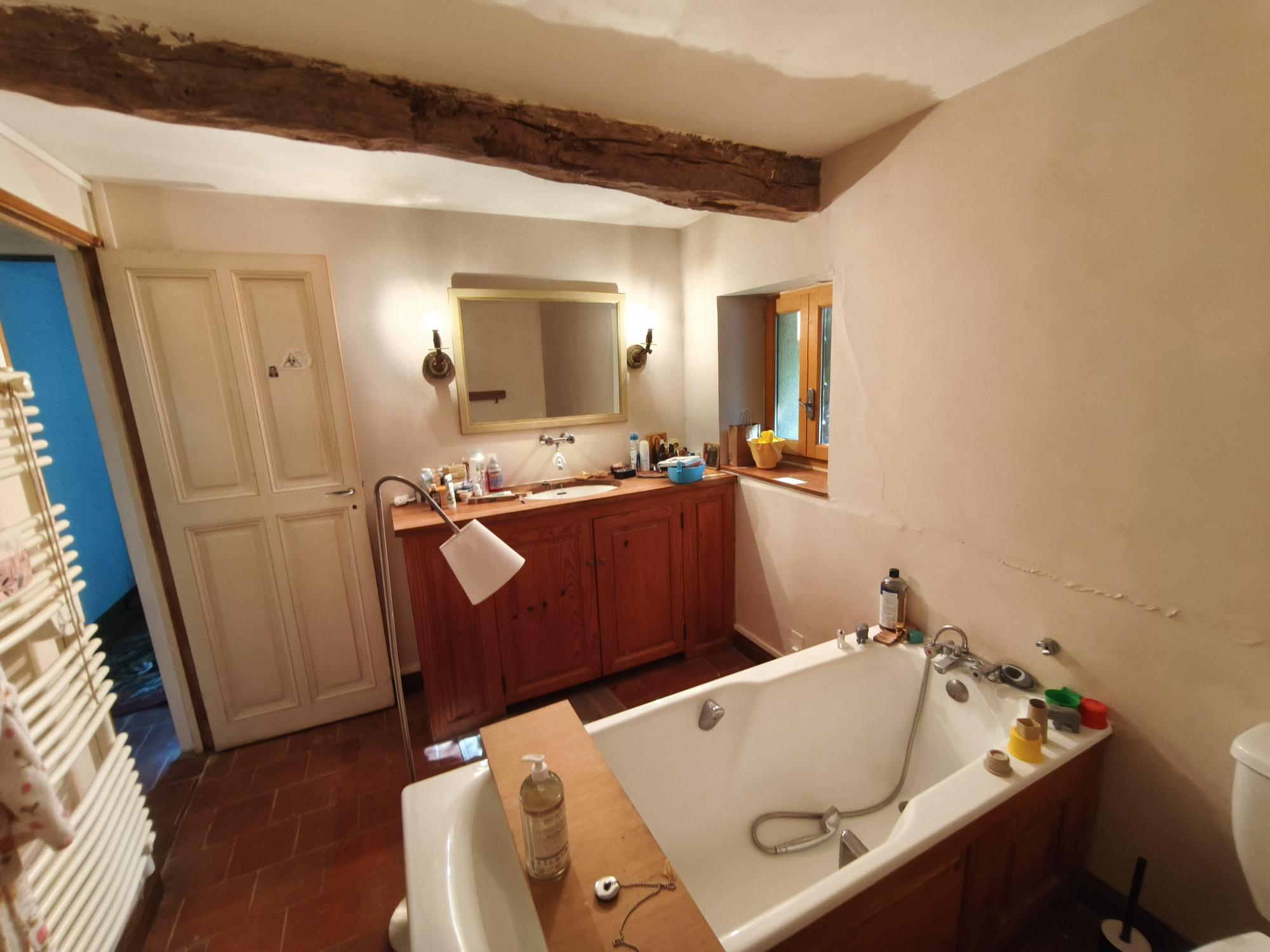 L'étage donne accès à 3 grandes chambres allant de 15 m² à 33 m² dont une avec un pigeonnier dont la charpente est entièrement apparente et rénovée. Deux d'entre elles disposent d'une salle de bains avec wc et une salle d'eau avec wc idéales pour recevoir vos amis et la famille.