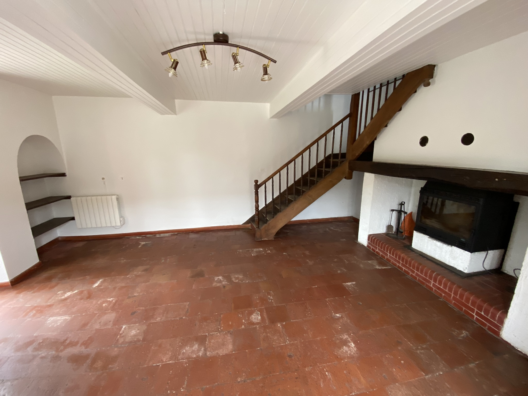 La cuisine, entièrement refaite à neuf, s’intègre harmonieusement à un séjour lumineux où l’insert bois apporte confort et convivialité lors des soirées d’hiver. L’étage accueille deux grandes chambres avec parquet ainsi qu’une salle d’eau rénovée, offrant un espace nuit agréable et fonctionnel.