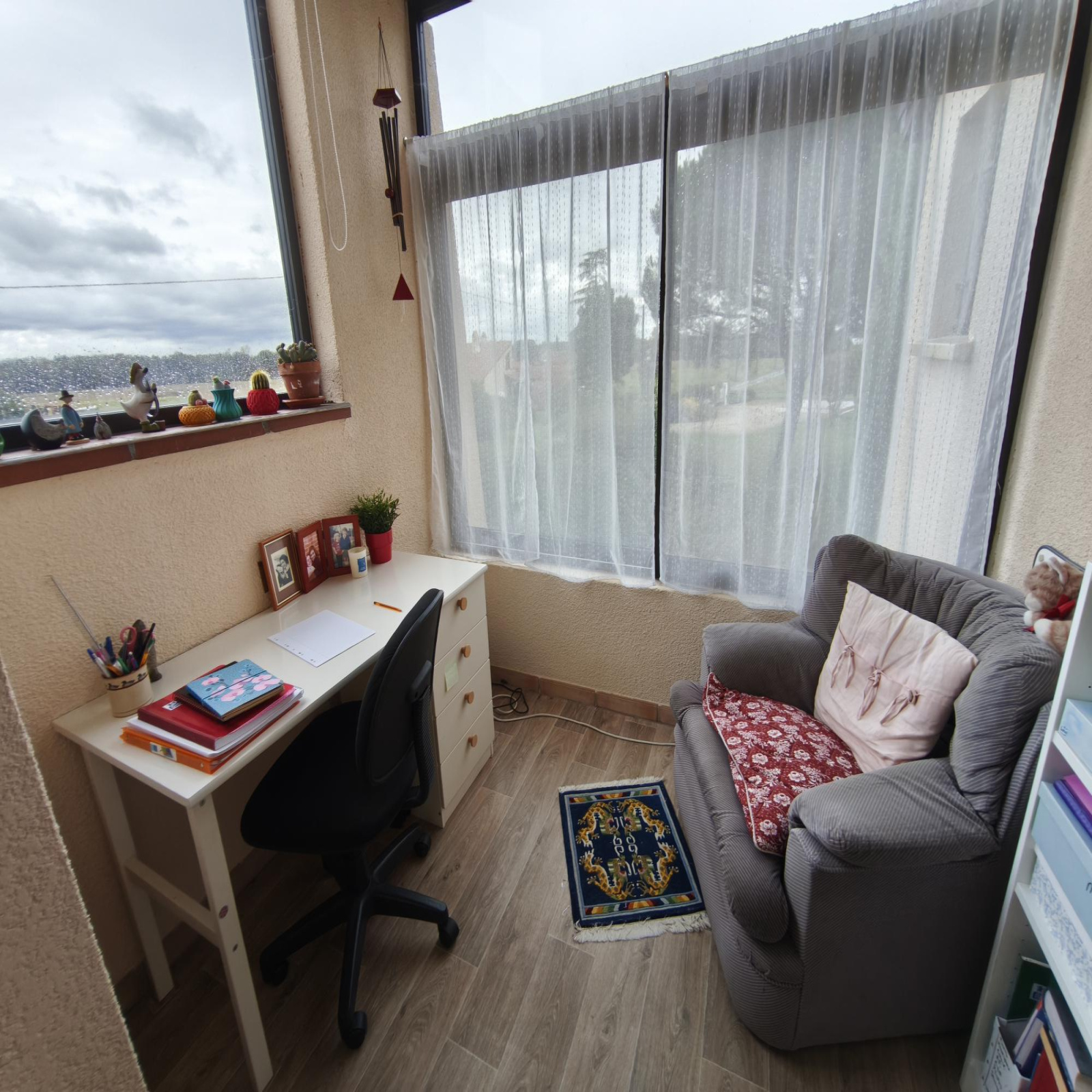 L'étage est composé de deux chambres avec placards, un grand bureau, une véranda, une salle de bain et wc séparés.