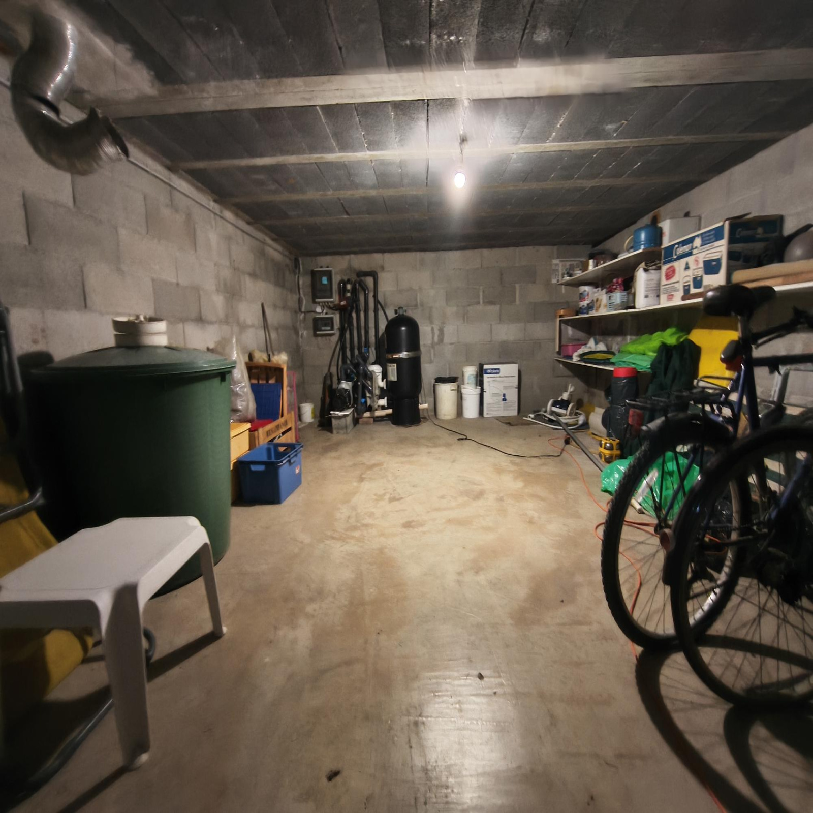Elle dispose aussi d'un grand garage de 135 m² avec une partie cave, atelier et stockage.
